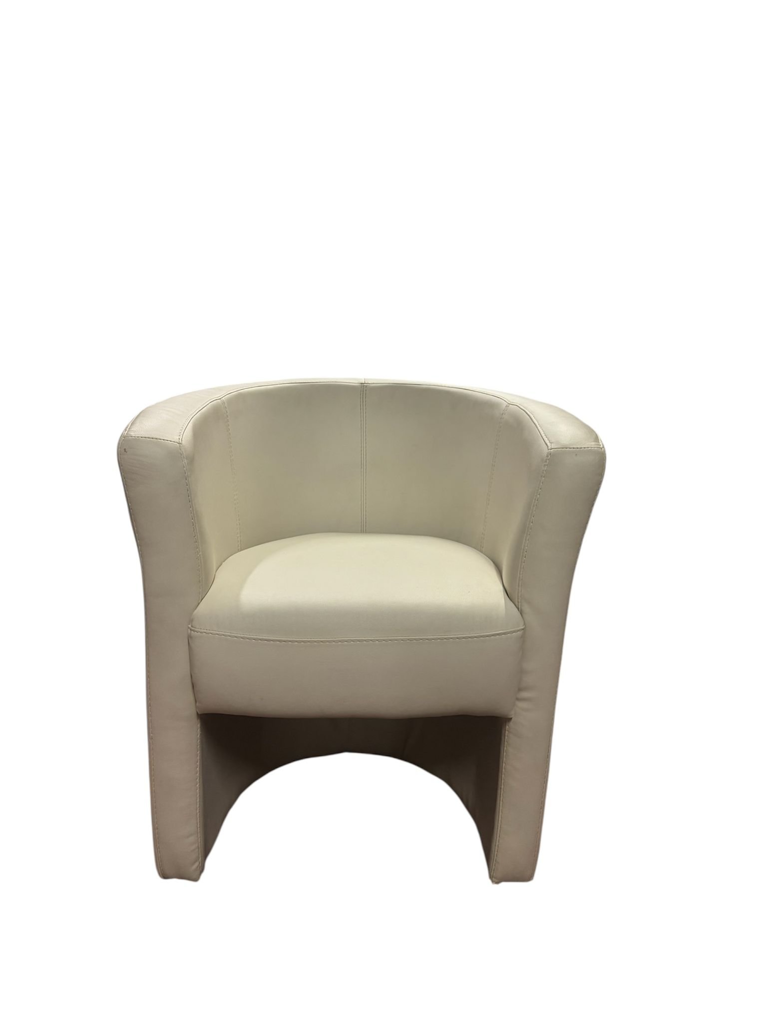 Poltrona a pozzetto in pelle bianca, ha un design versatile che si presta ad un contesto contemporaneo e luoghi d’attesa.