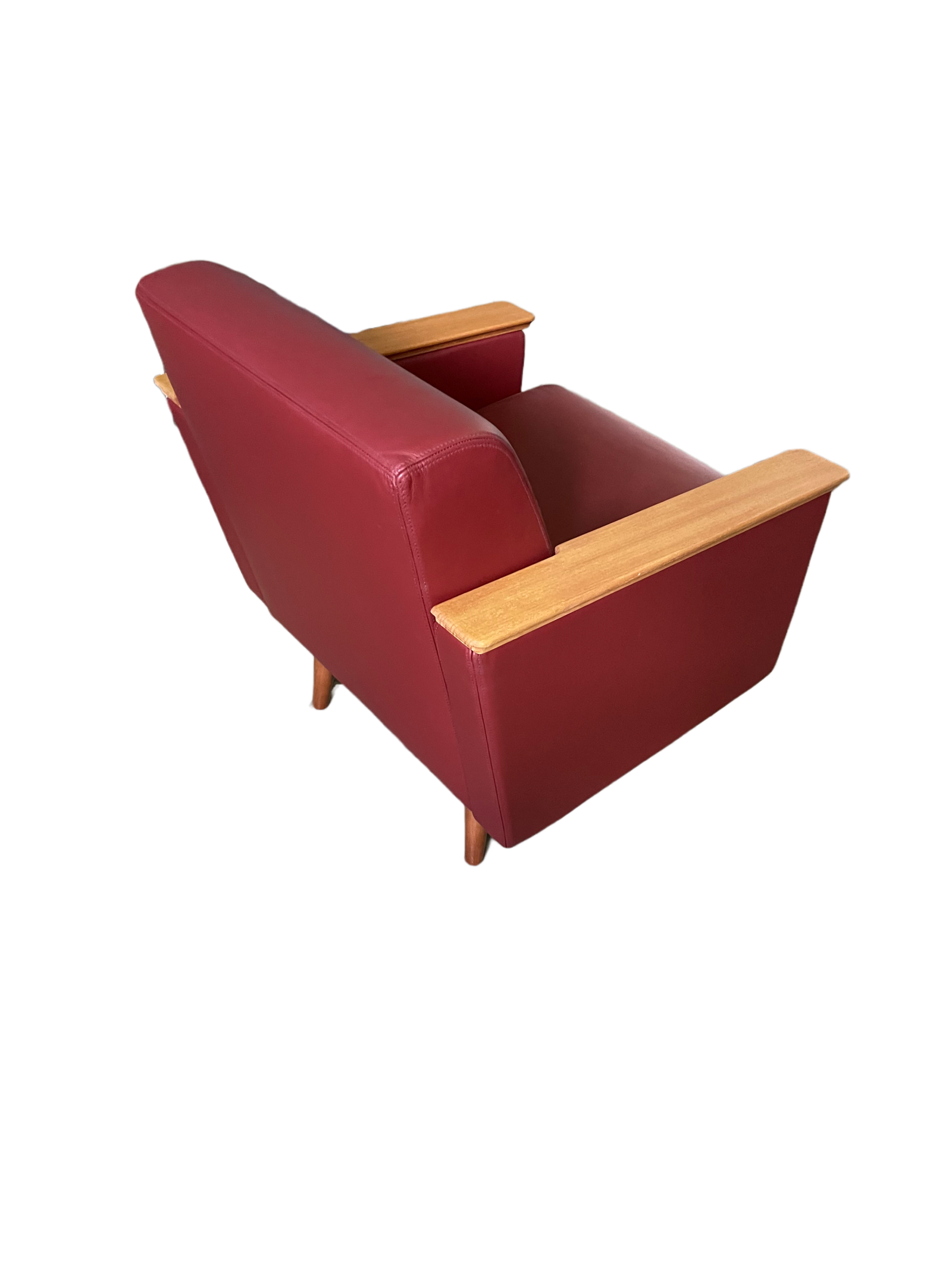Poltrona esclusiva realizzata artigianalmente, design Rental Design in velluto di colore bordeaux. Caratterizzata da piedini e braccioli in legno dalla sfumatura calda.