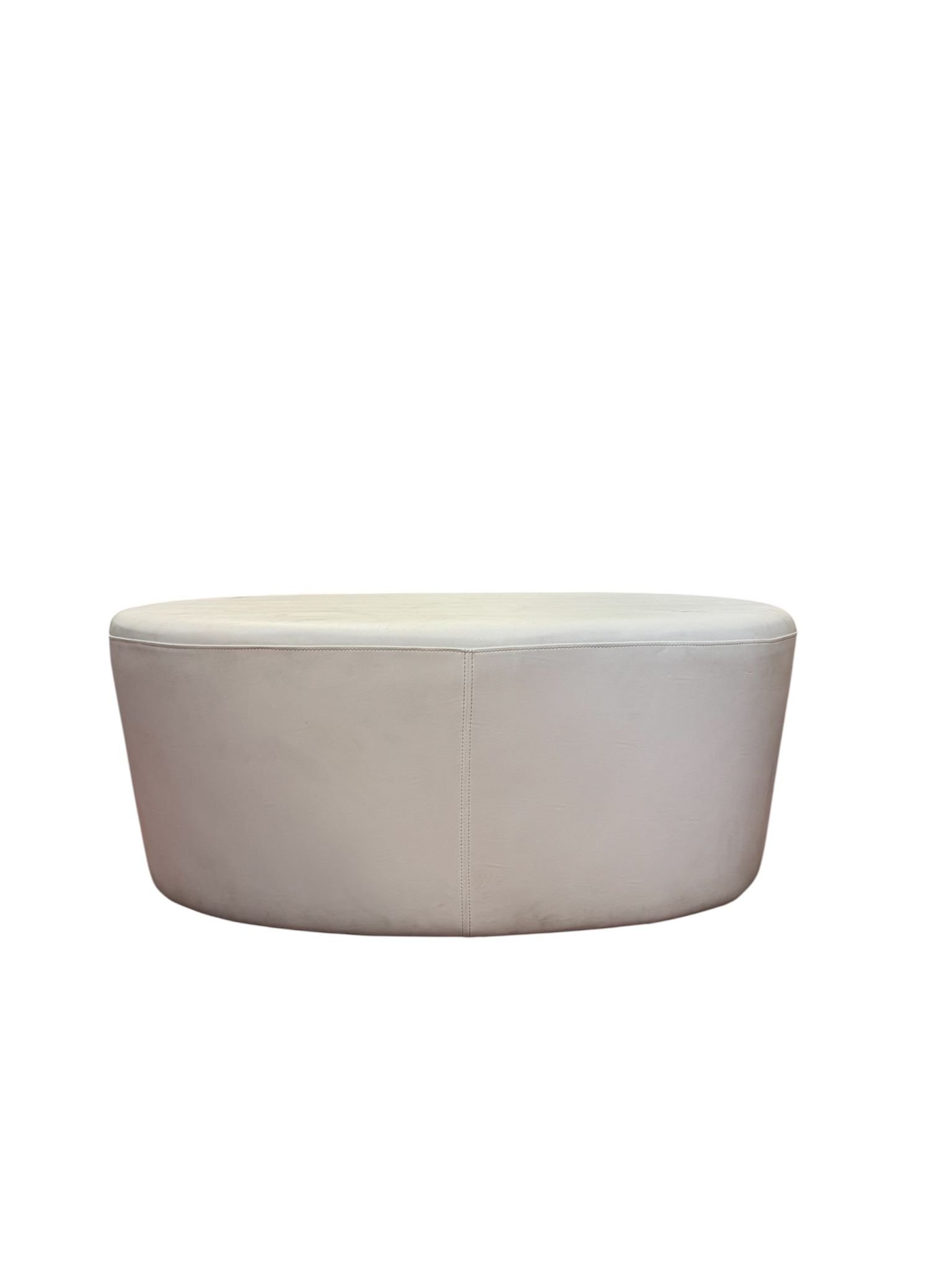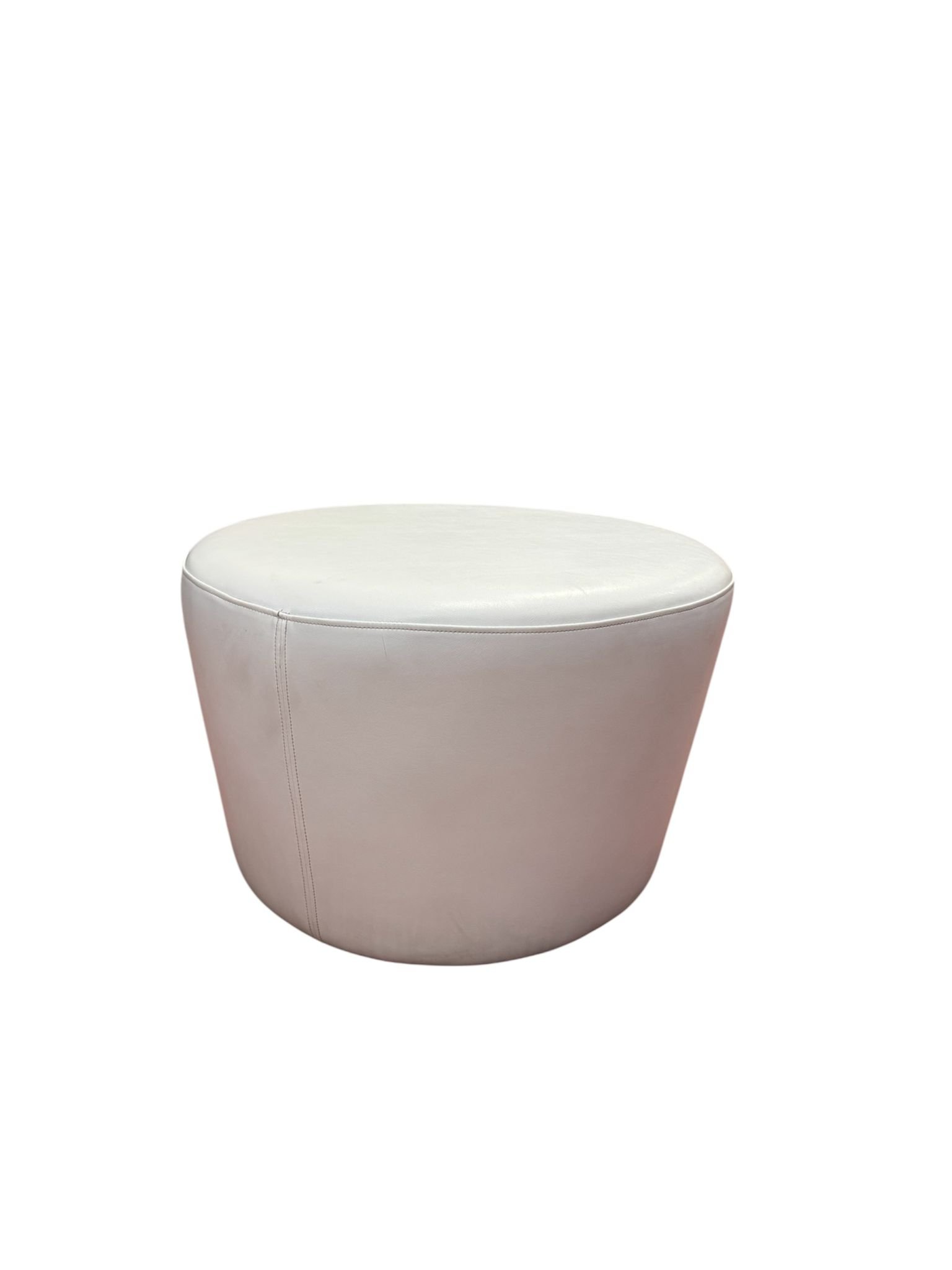 Trio pouf circolari dallo stile moderno in ecopelle bianche, misure varie. Della stessa linea sono presenti anche pouf ovali. Ideali per aree lounge.