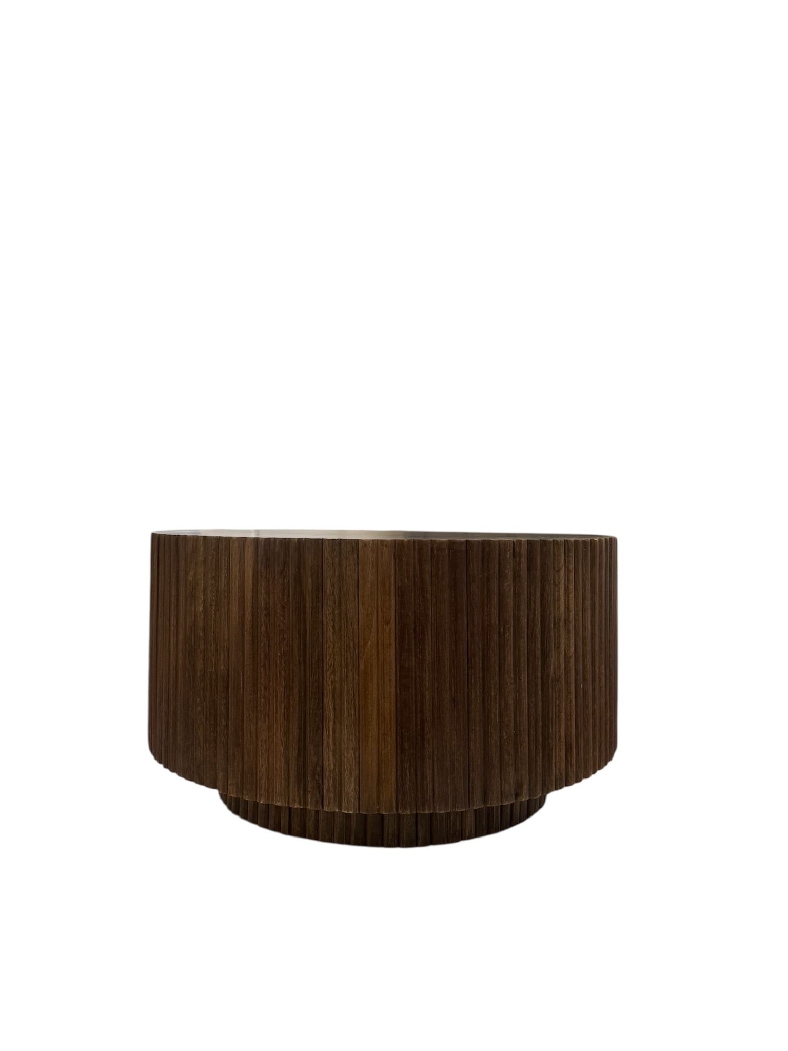Tavolino con ripiano in legno e base in legno lavorato.